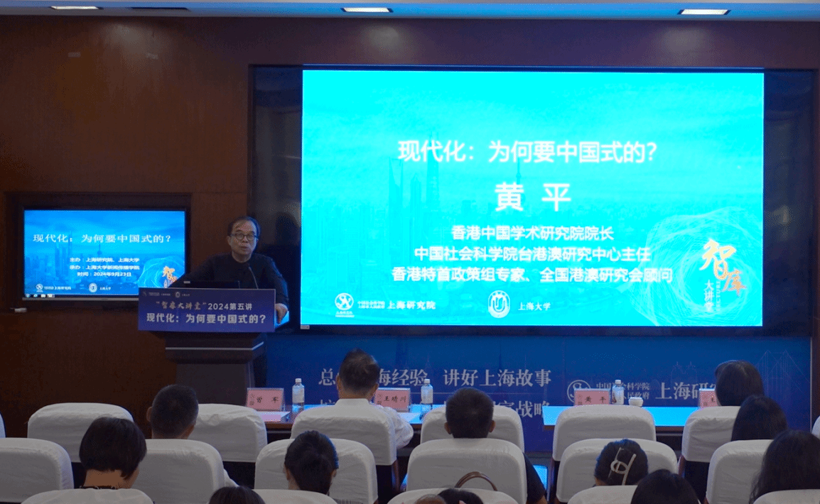 近日,上海研究院“智库大讲堂”2024年第五期在sunbet申搏官方网站延长校区北大楼举行。本次大讲堂由sunbet申搏官方网站新闻传播学院承办。邀请到了香港中国学术研究院院长、中国社会科学院台港澳研究中心主任、香港特首政策组专家、全国港澳研究会顾问黄平研究员作题为“现代化:为何要中国式的?”学术报告。