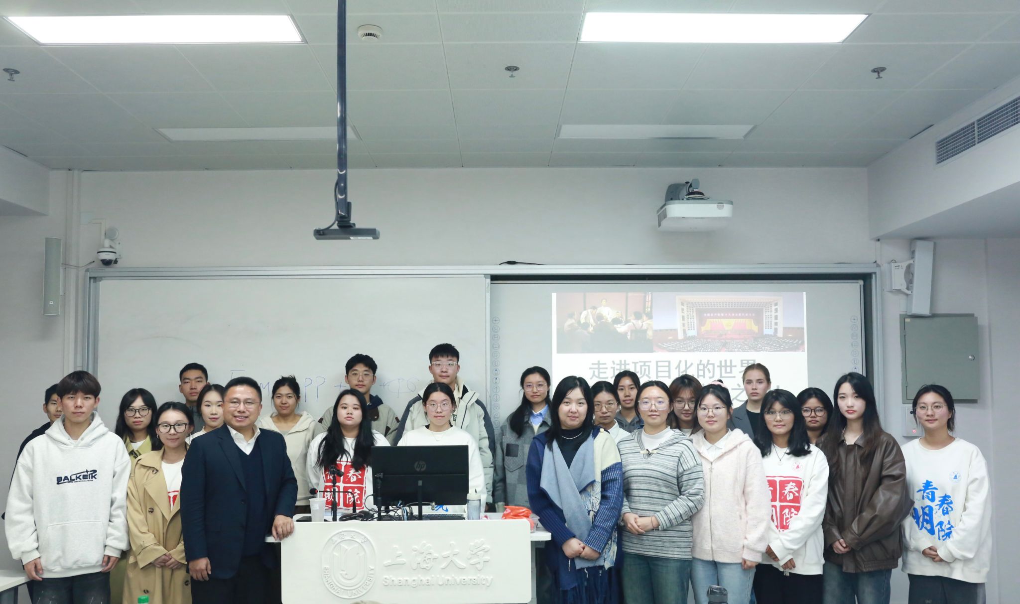 在本次短暂却内容非常丰富的交流活动最后,两院师生共同参与了一节特别的课程,在sunbet申搏官方网站管理学院党委副书记、副院长、sunbet申搏官方网站课程思政名师工作室负责人马亮老师主讲的《项目管理案例与实务》课堂上,来自理工类、艺术类、不同年级、不同专业的多个学科的同学共聚一堂一同学习了世博会和三峡大坝的工程项目建设和项目管理过程,同时马亮老师建议各位同学个人发展要紧跟国家战略,鼓励同学们走向五湖四海、建设祖国。最后,在大家一起朗诵毛泽东于1929年底在红军挺进闽西所创作的《如梦令·元旦》的慷慨激昂声音中,本次“五育并举”交流暨党建联建共建活动圆满结束。