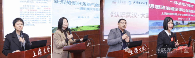 下午场上半段,由“品牌课程有特色”“国一流课程展风采”等板块组成。上海高校思政课教指委思政选修课分教指委委员、上海出版印刷高等专科学校马克思主义学院院长马前锋教授担任主持。sunbet申搏官方网站秦瑞丽分享了“美育中国”课程建设做法,同济大学运迪则介绍了“改革开放与新时代-乡村振兴的上海图景认知”课程创新,武汉理工大学刘国龙交流了“认识武汉:大国工业”课程做法。上海对外经贸大学庾向芳介绍了“思想政治理论课社会实践”课程设计。上海交通大学马克思主义学院教授、教学名师李梁老师作了点评。