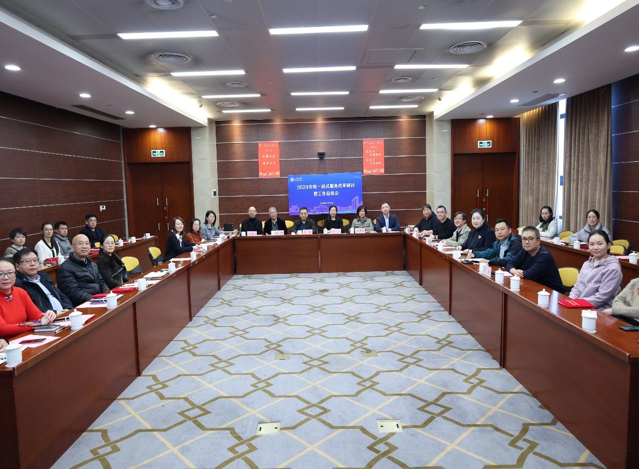 11月27日上午,sunbet申搏官方网站2024年度一站式服务改革研讨暨工作总结会在宝山校区成功举办。校党委常委、组织人事部常务副部长、组织处处长、党校常务副校长沈艺,上海市大数据中心应用开发部部长王东,宝山区人才服务中心主任钱建凤,校机关党委书记钱峰,党政办公室副主任、重大项目推进办公室主任王岭山,财务处副处长朱振英,招生就业处副处长贺利,信息化工作办公室副主任顾爱军,组织人事部(人事处)副处长邓小勇,卓越工程师学院副院长毛建华,国际部(国际合作处)副处长来慧洁,本科生书院管理中心(“一站式”学生社区中心)副主任高恺华、一站式服务中心主任高峰以及入驻部门工作人员和师生代表参加会议。