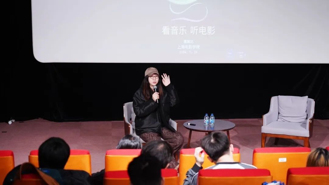 著名作曲家、影视音乐制作人董颖达老师,以“看音乐,听电影”为主题,带领学生从新的角度认识电影音乐,并以自身作品为例,从电影音乐创作的角度深入探讨了音乐在电影叙事与情感传达中的核心作用。她认为,电影音乐的本质并不是单纯的背景填充,而是叙事逻辑和情感张力的重要延伸,通过与影像语言的巧妙结合,音乐能够为电影赋予更深层次的情绪表达和观众体验。