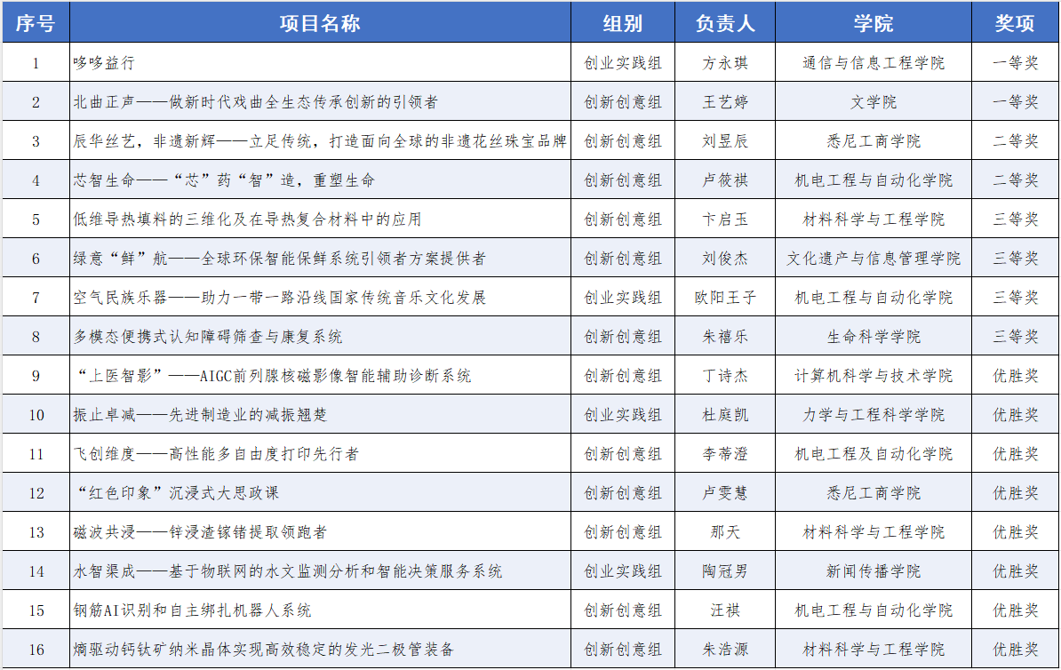 本届大赛共评选出一等奖2项、二等奖2项、三等奖4项、优胜奖8项。具体名单如下: