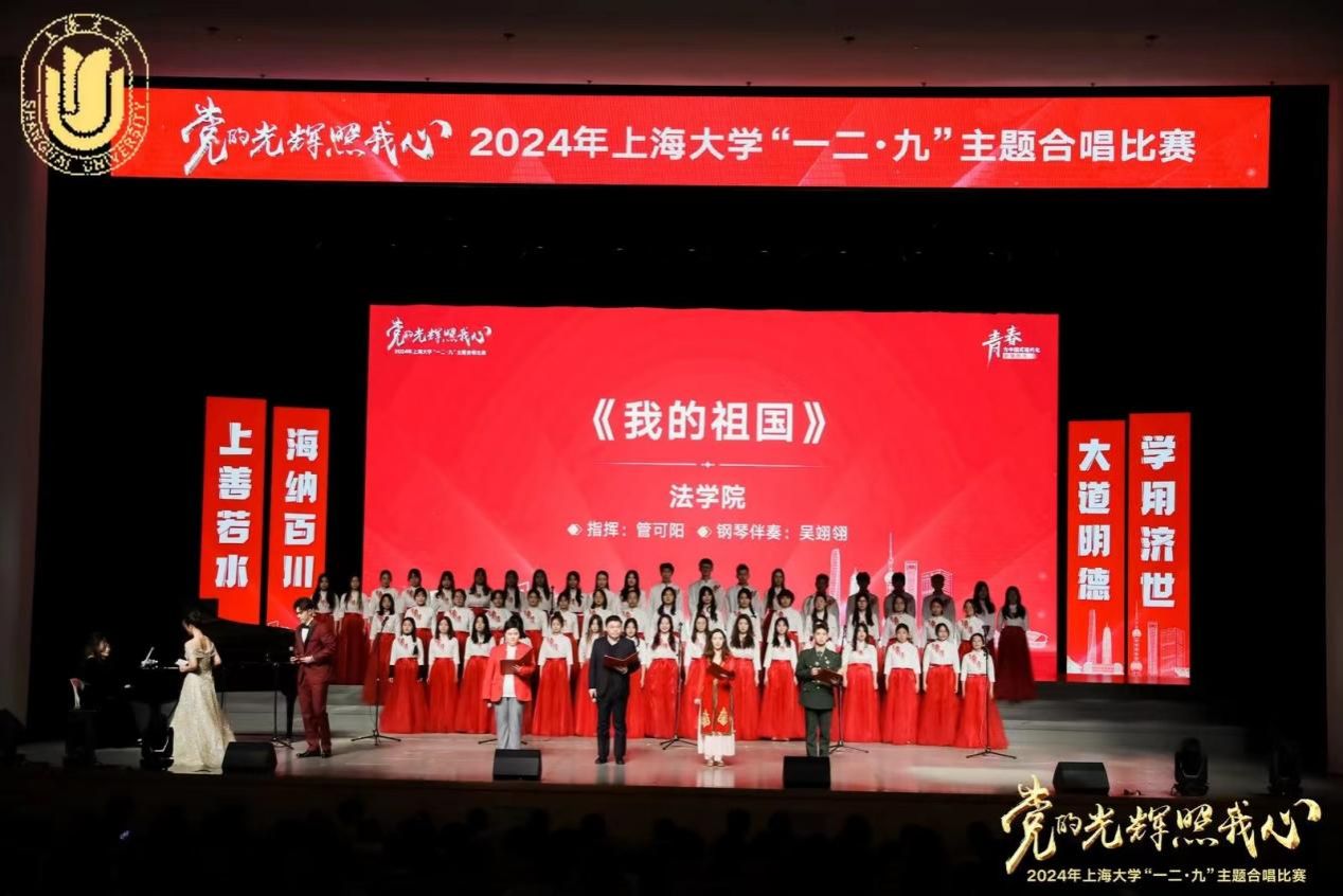 “党的光辉照我心”——2024年sunbet申搏官方网站“一二·九”主题合唱比赛于12月8日晚在sunbet申搏官方网站伟长楼举行。本次合唱比赛共有29支参演队伍、1500余名师生登台表演,共同奏响新时代爱国强音。由法学院60名师生组成的“无法不爱”合唱团队,以一首《我的祖国》唱响伟长楼,生动展现了中华儿女的爱国热情与民族自豪。