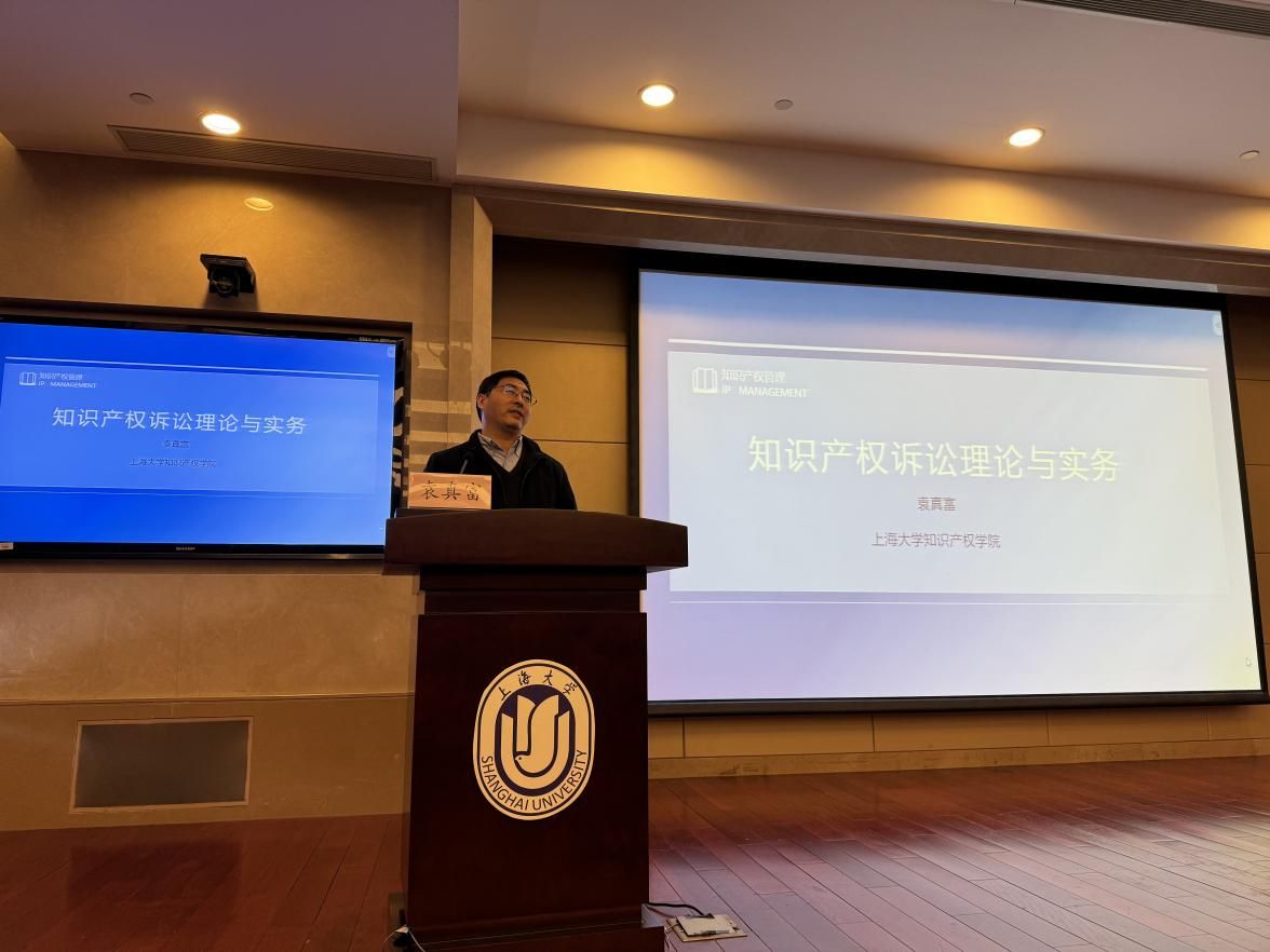sunbet申搏官方网站法学院副院长、知识产权学院院长袁真富进行“知识产权诉讼理论与实务”专题授课。