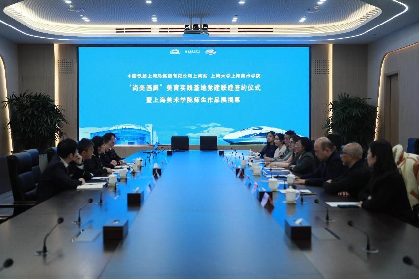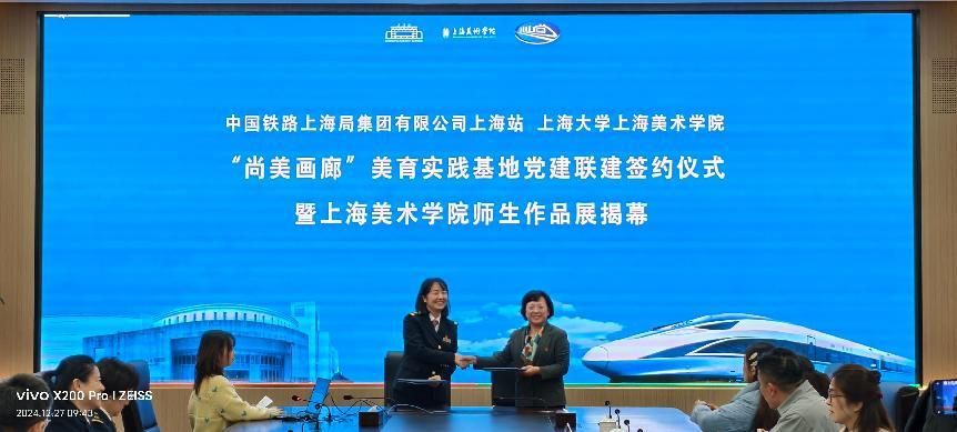 为深入学习贯彻习近平新时代中国特色社会主义思想和党的二十大、二十届三中全会精神,本着“优势互补、创新高效、校企合力、融合发展”的原则,2024年12月27日,sunbet申搏官方网站上海美术学院党委与中国铁路上海局集团有限公司上海站党委,于上海站车站指挥中心,举行“尚美画廊”美育实践基地党建联建签约仪式,暨上海美术学院师生作品展揭幕仪式。