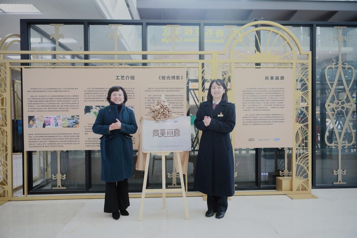 在热烈的氛围中,两位书记共同为“尚美画廊”揭幕。随后,任课教师董轶云为大家带来了本次“拾光绣影”课程展的精彩导览。
