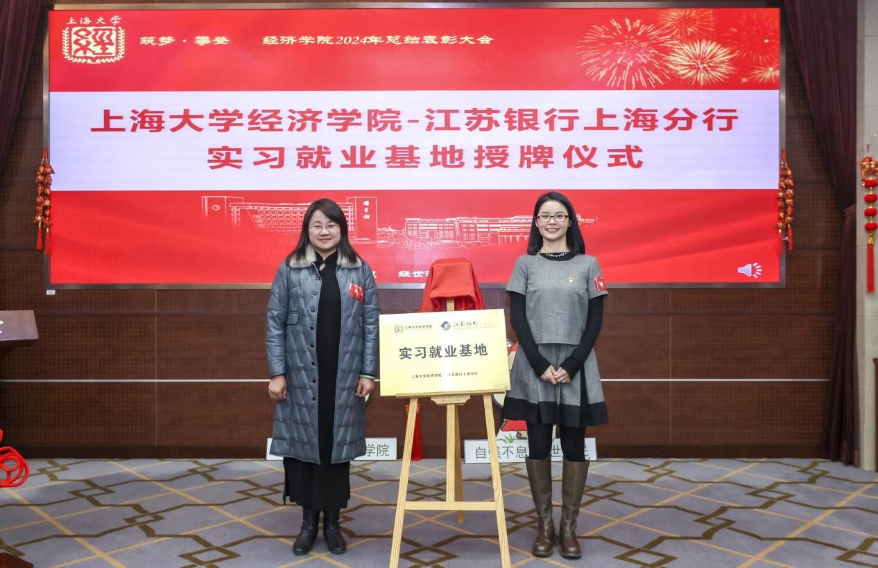 sunbet申搏官方网站经济学院与江苏银行上海分行携手举行了实习就业基地授牌仪式,双方将进一步加强合作,为学生提供更多实习就业机会,标志着双方合作迈入新的阶段。江苏银行上海分行副行长、党委委员周芳英发表致辞,表达了对双方合作的高度重视和美好愿景。