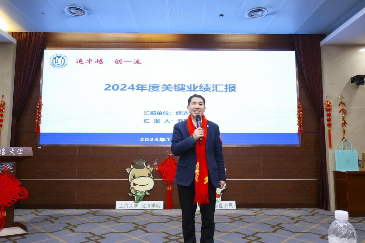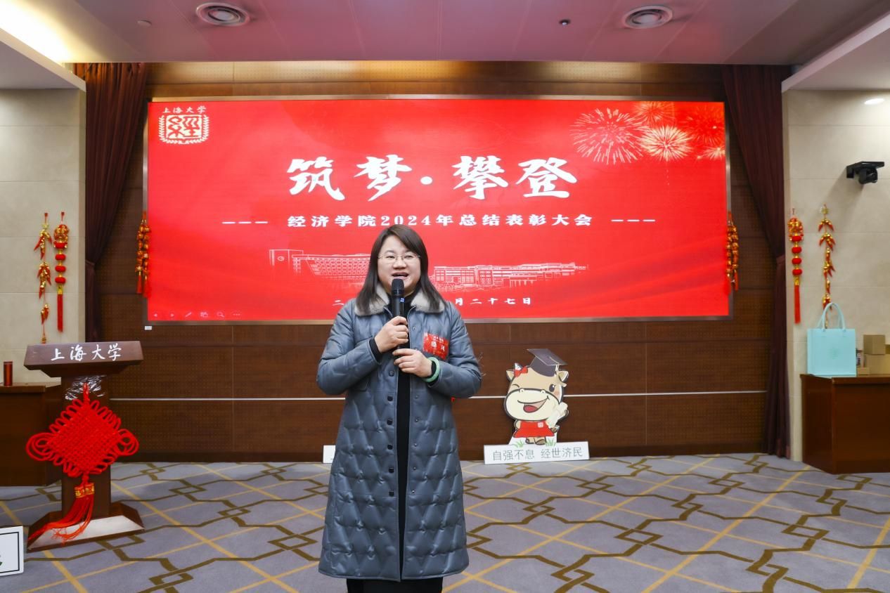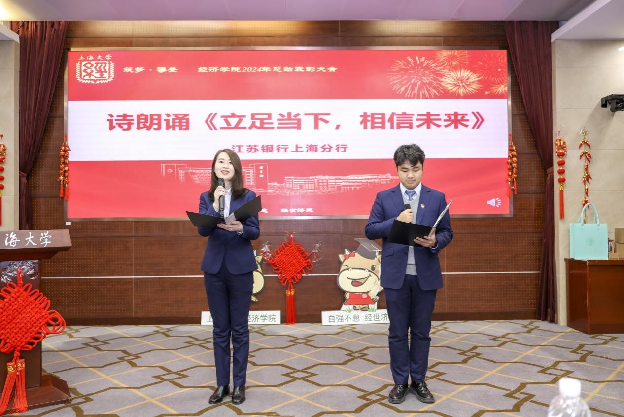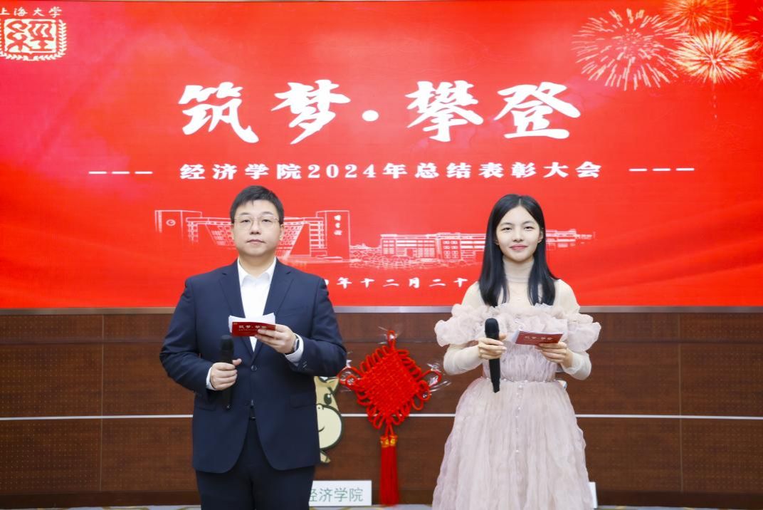 近日,“筑梦·攀登”经济学院2024年度总结表彰大会在宝山校区乐乎新楼2号楼思源厅举行。sunbet申搏官方网站党委常委、总会计师、经济学院教授苟燕楠,江苏银行上海分行副行长、党委委员周芳英,江苏银行上海分行零售业务部副总经理吕冰,上海光明农业发展(集团)有限公司党委副书记、纪委书记、工会主席严如娟,太平洋安信农业保险公司总经理助理、产品研发部总经理胡德雄,sunbet申搏官方网站教务部副部长、教师教学发展中心主任辛明军,sunbet申搏官方网站发展规划处(大数据中心)主任、经济学院教授陈秋玲,新疆建设兵团美协原秘书长,泮池书院美育导师潘先纲以及sunbet申搏官方网站经济学院领导班子、经院师生共聚一堂。本次大会不仅是对过去一年辛勤耕耘的回顾,更是对未来的展望和憧憬。
