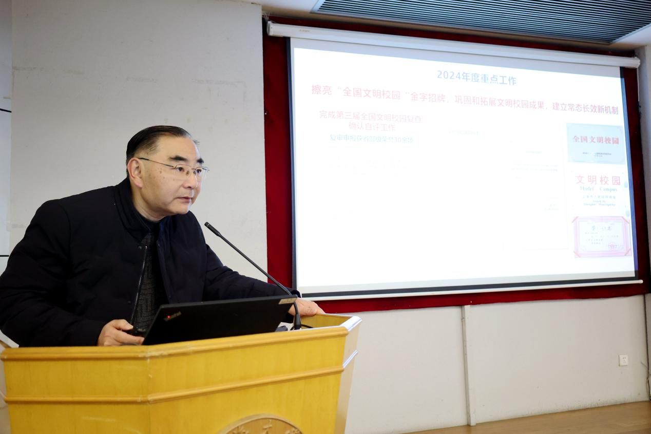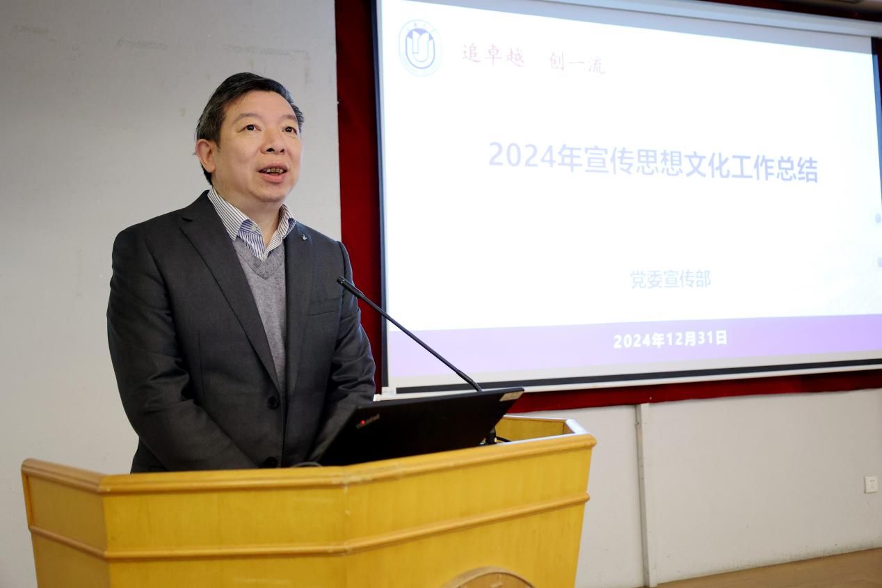校党委常委、党委宣传部部长曾军从高举思想旗帜、落实工作责任、壮大主流舆论、弘扬社会主义核心价值观4个方面对sunbet申搏官方网站2024年宣传思想文化工作进行回顾和总结。