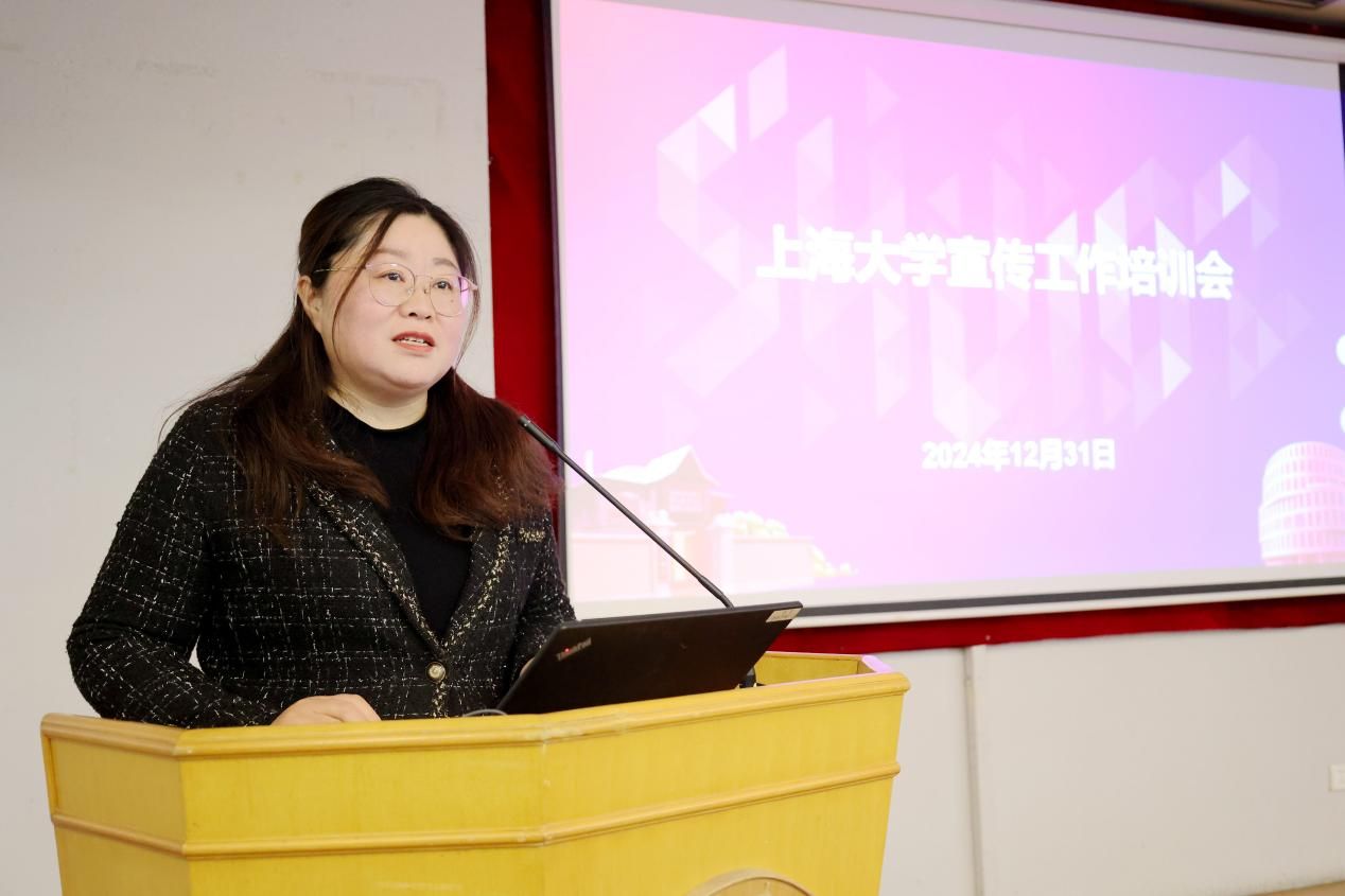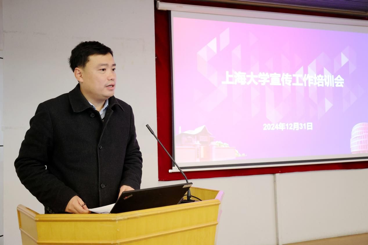 为深入学习贯彻党的二十届三中全会精神,进一步提升sunbet申搏官方网站宣传工作队伍的理论素养和业务能力,担负起举旗帜、聚民心、育新人、兴文化、展形象的新时代宣传思想工作的使命任务,sunbet申搏官方网站宣传工作培训会暨第八期宣传员培训班近日在宝山校区行政楼报告厅举行。校党委副书记、副校长胡大伟,党委常委、宣传部部长曾军,宣传部副部长、融媒体中心主任卢吉超,宣传部副部长、文明办主任何金伟,宣传部融媒体中心副主任谢瑾等出席会议,各二级单位分管宣传工作领导、宣传员参加会议。本次培训班由卢吉超主持。
