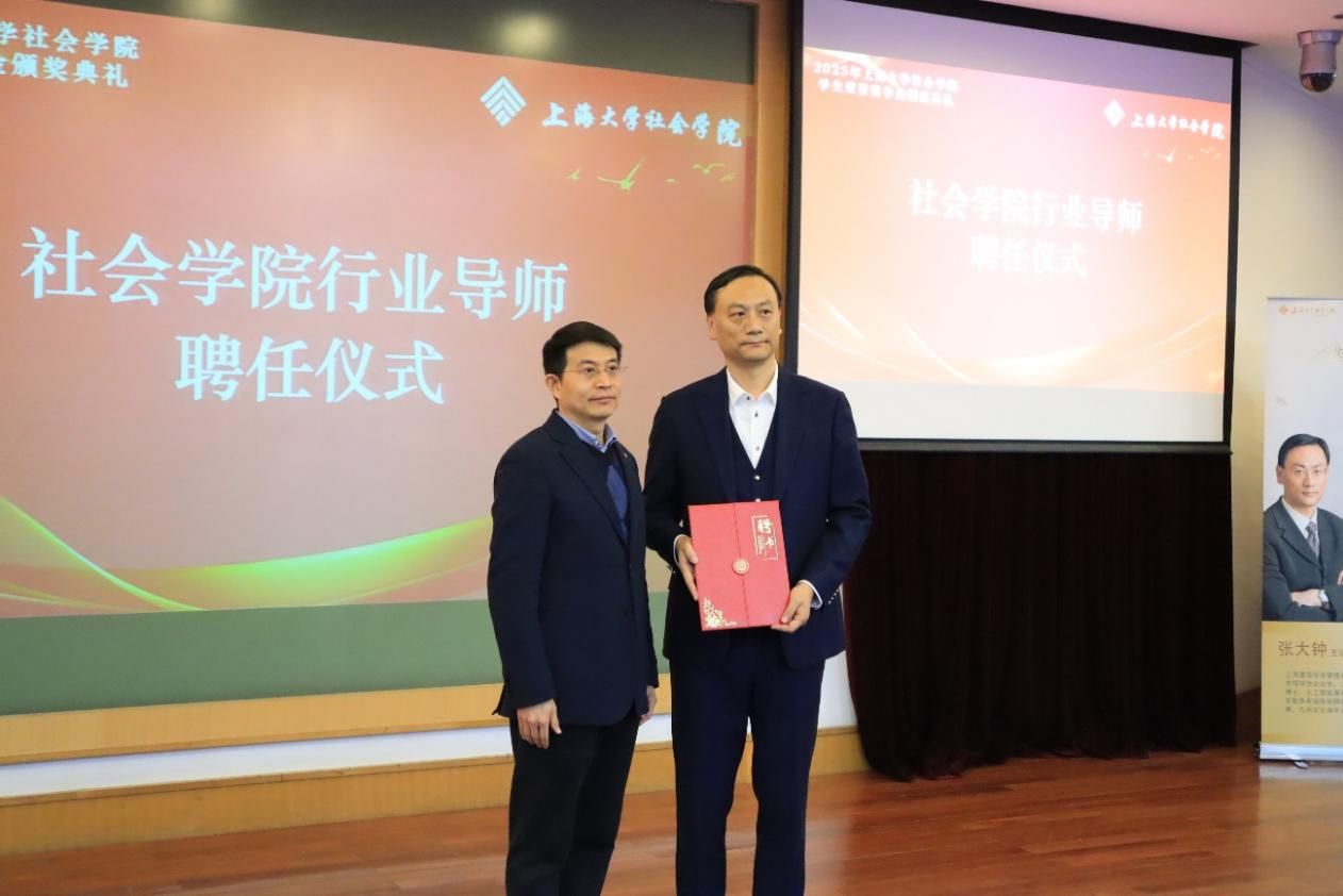 张大钟校友是sunbet申搏官方网站社会学博士,担任sunbet申搏官方网站校董、上海盟海投资管理有限公司董事长、上海市排球协会会长,阿里体育创始董事、北京歌华有线电视网络股份有限公司独立董事、九州文化海外公司董事,曾获上海市科学技术进步一等奖,“上海市领军人才”“中国新媒体领军人物”“新长征突击手”“上海文化新人”等荣誉。为进一步加强校友联系,链接社会资源,学院聘任张大钟校友为学院学生行业导师,并与3位同学结对带教。