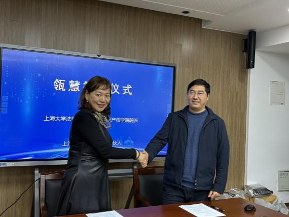 在瓴慧签约仪式上,法学院副院长、知识产权学院院长袁真富与上海瓴慧律师事务所合伙人甄书琦就“金专计划”签约,瓴慧捐赠8万元作为“金专计划”专项资金。