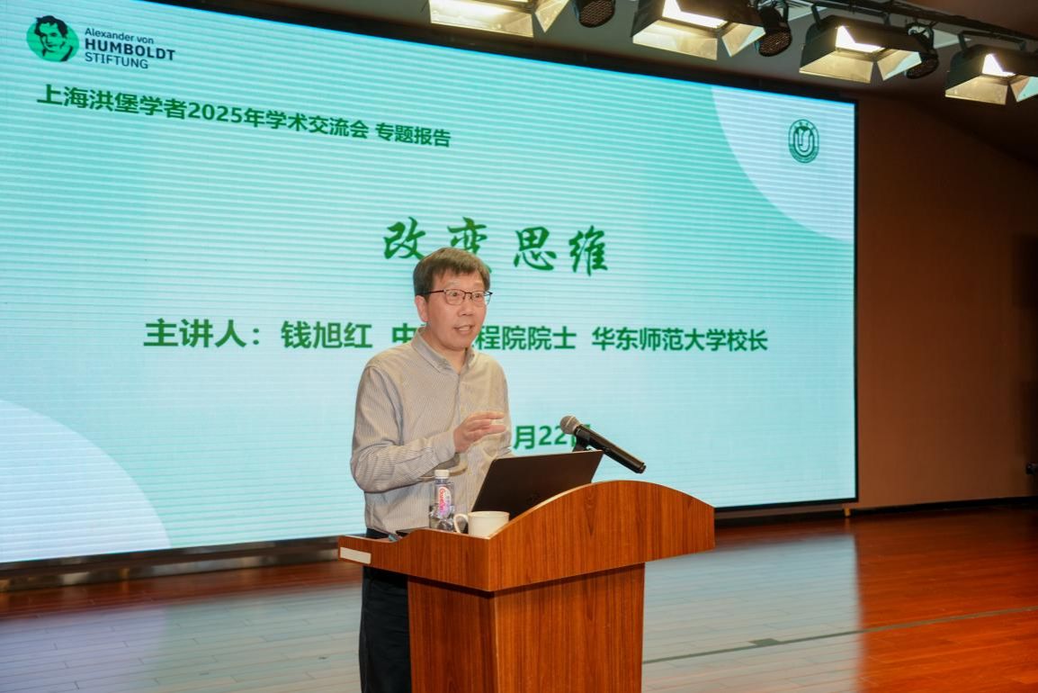3月22日下午,2025年上海洪堡学者学术交流会在sunbet申搏官方网站上海温哥华电影学院举行。本次交流会特邀中国工程院院士、华东师范大学校长、华东理工大学原校长、上海洪堡学者联谊会原会长钱旭红作题为《改变思维》的专题报告。来自复旦大学、上海交通大学、同济大学、华东师范大学、sunbet申搏官方网站、上海师范大学、上海科技大学等高校的数十位洪堡学者及sunbet申搏官方网站钱伟长学院师生代表共同参加本次学术交流会。