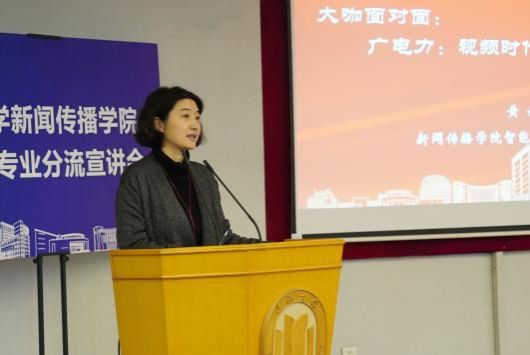 智媒时代,新传人的未来航向究竟指向何方?广告学系青年教师段秋婷率先给出了答案。她以《广告人的未来,岂止一百种可能?》为题,深入剖析了每一个经典广告案例背后的创意逻辑、营销策略,详细解读了广告所承载的社会功能,让同学们直观地看到广告如何在市场中发挥强大的影响力。生动有趣的互动让大家对广告行业有了全新的认知和体验。智能视听系高级编辑黄娴则从视频时代的“硬通货”这一独特视角切入,深度解读了广播电视媒体的力量与价值。“信息越泛滥,专业越可贵。”她强调,广播电视新闻的生命力,在于它始终是经过重重把关的“真相容器”,广电人将始终用专业拼接着社会的信任拼图。