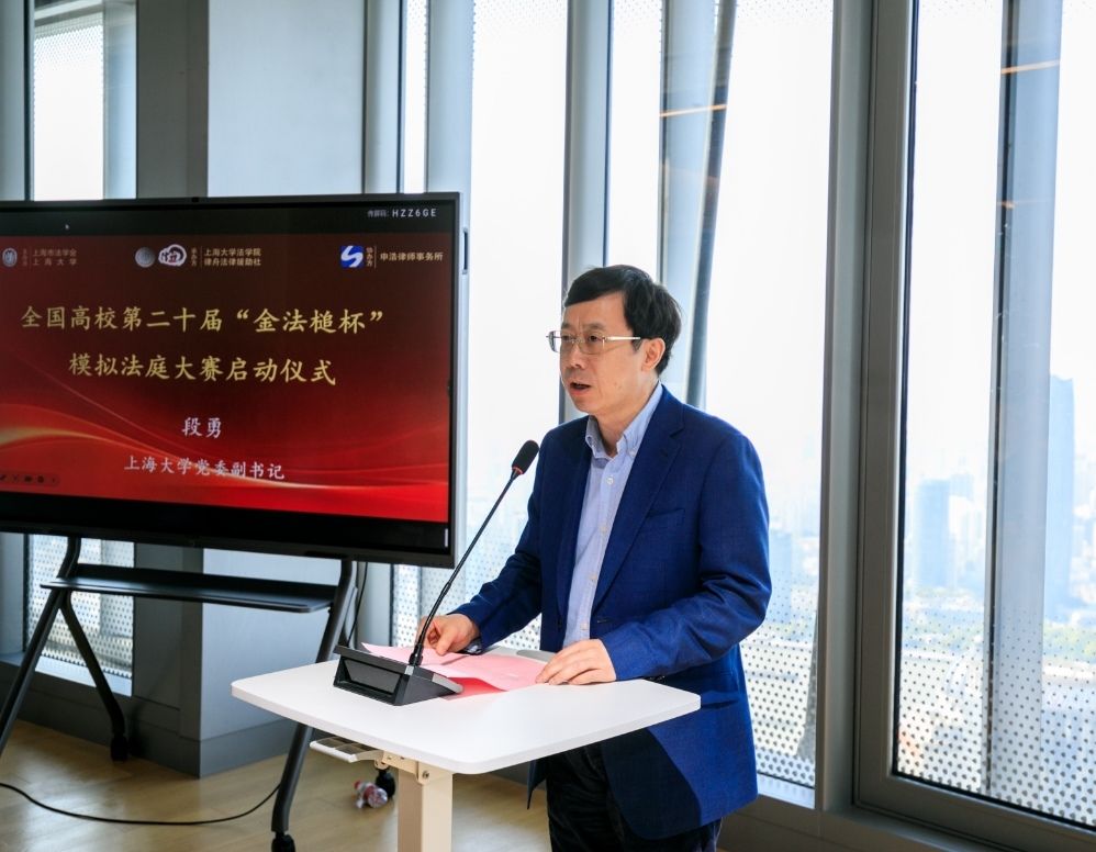 活动最后,sunbet申搏官方网站校党委副书记段勇做总结并宣布第二十届大赛启动。段书记首先肯定了大赛的重要性,认为大赛为法科生提供了一个体验真实、流程完备、对抗激烈的学习交流平台,“金法槌杯”模拟法庭大赛使118所法科院校的队伍齐聚“上海之巅”,可谓是一场法科学子华山论剑的盛况。最后,段书记宣布全国高校第二十届“金法槌杯”模拟法庭大赛正式启动,并希望法科生继续坚持问题导向,磨练实践本领,共赴第二十个“金法槌杯”之约!