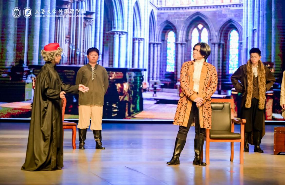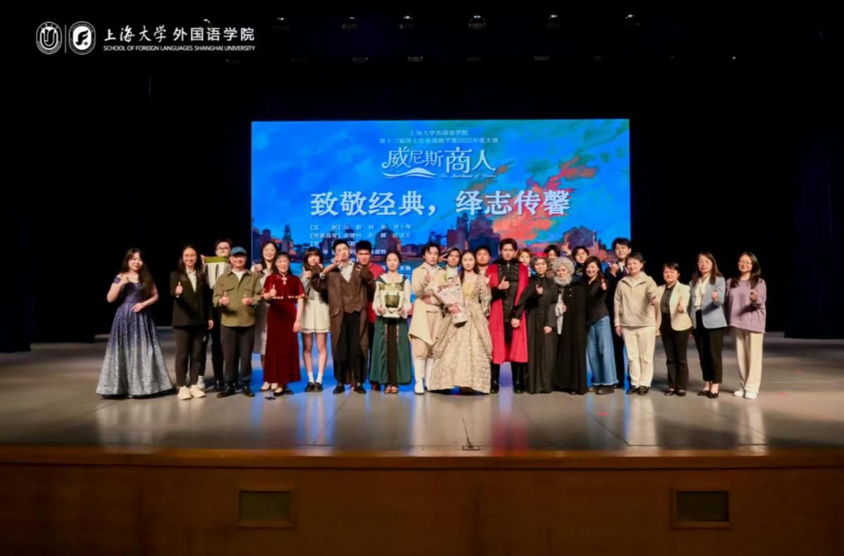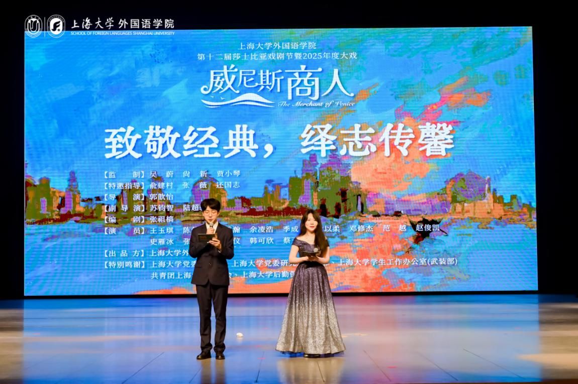 5月9日下午,sunbet申搏官方网站第十二届莎士比亚戏剧节暨外国语学院2025年度大戏《威尼斯商人》在伟长楼成功展演。这场以戏剧为纽带的盛宴,既是校园文化建设的鲜活体现,也是中外文化交流的璀璨舞台。今年是sunbet申搏官方网站外国语学院建院30周年,我院始终遵循“培养具有中国灵魂、全球视野的卓越创新型外语人才”的人才培养理念,激励学生投身剧本创作、导演及表演,将书本知识转化为舞台上的生动展现。通过这种方式,传播中华文化,坚定文化自信,学习莎士比亚经典作品,促进中外文明的交流互鉴。