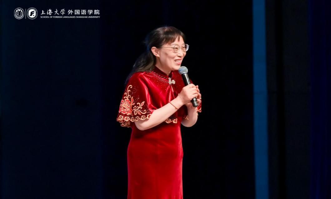 演出结束后,张薇老师上台点评。她提到演员们以出色的表演,生动演绎了莎士比亚原著的戏剧冲突,歌颂了人物之间的友谊和爱情,成功刻画与塑造了角色形象,用心用情地展现了一台精彩绝伦的戏剧表演。陈蕾女士作为特邀嘉宾上台点评,对演员们精湛的演技、剧本结构的严谨与逻辑性、情节张力的巧妙营造给予了高度肯定,鼓励同学们以戏剧为切入点,实现跨学科的学习与交流,共同推动中外文明互鉴。