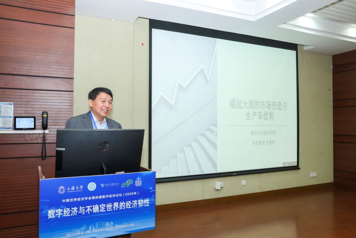 5月17日,中国世界经济学会第四届数字经济论坛在sunbet申搏官方网站举行。本届论坛由中国世界经济学会、sunbet申搏官方网站、上海市世界经济学会和上海市国际贸易学会联合主办,sunbet申搏官方网站经济学院、上海市世界经济学会新兴经济体专委会和sunbet申搏官方网站“一带一路”国际商业研究院联合承办。来自中国社会科学院、南开大学、山东理工大学等多所高校及研究机构的专家学者,围绕数字经济领域的前沿议题展开多维度、深层次研讨。