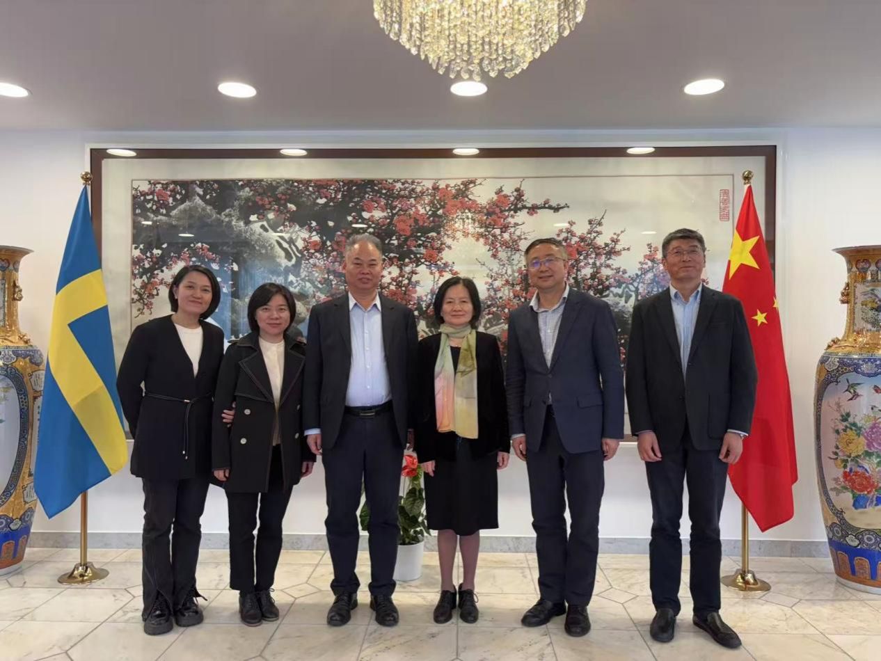 访瑞期间,代表团拜访了中国驻瑞典大使馆,与黄立琼参赞等进行交流,汇报了学校发展近况,并就发挥sunbet申搏官方网站办学优势助力中瑞教育文化合作听取了使馆指导建议。