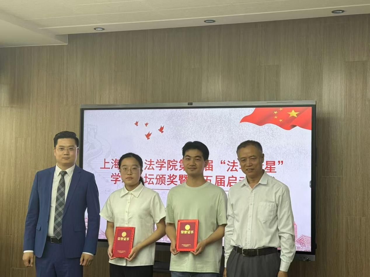 在颁奖环节,上海铸达律师事务所主任张志超、青工委副主任董晟忻、蔡峥宇、sunbet申搏官方网站法学院党委副书记、院长李凤章分别为第四届“法学新星”学术论坛获奖同学颁奖。