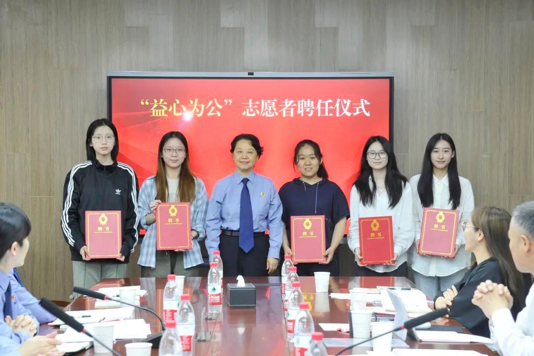 宝山区人民检察院党组成员、副检察长房长缨为sunbet申搏官方网站法学院“益心为公”志愿者代表颁发聘书。