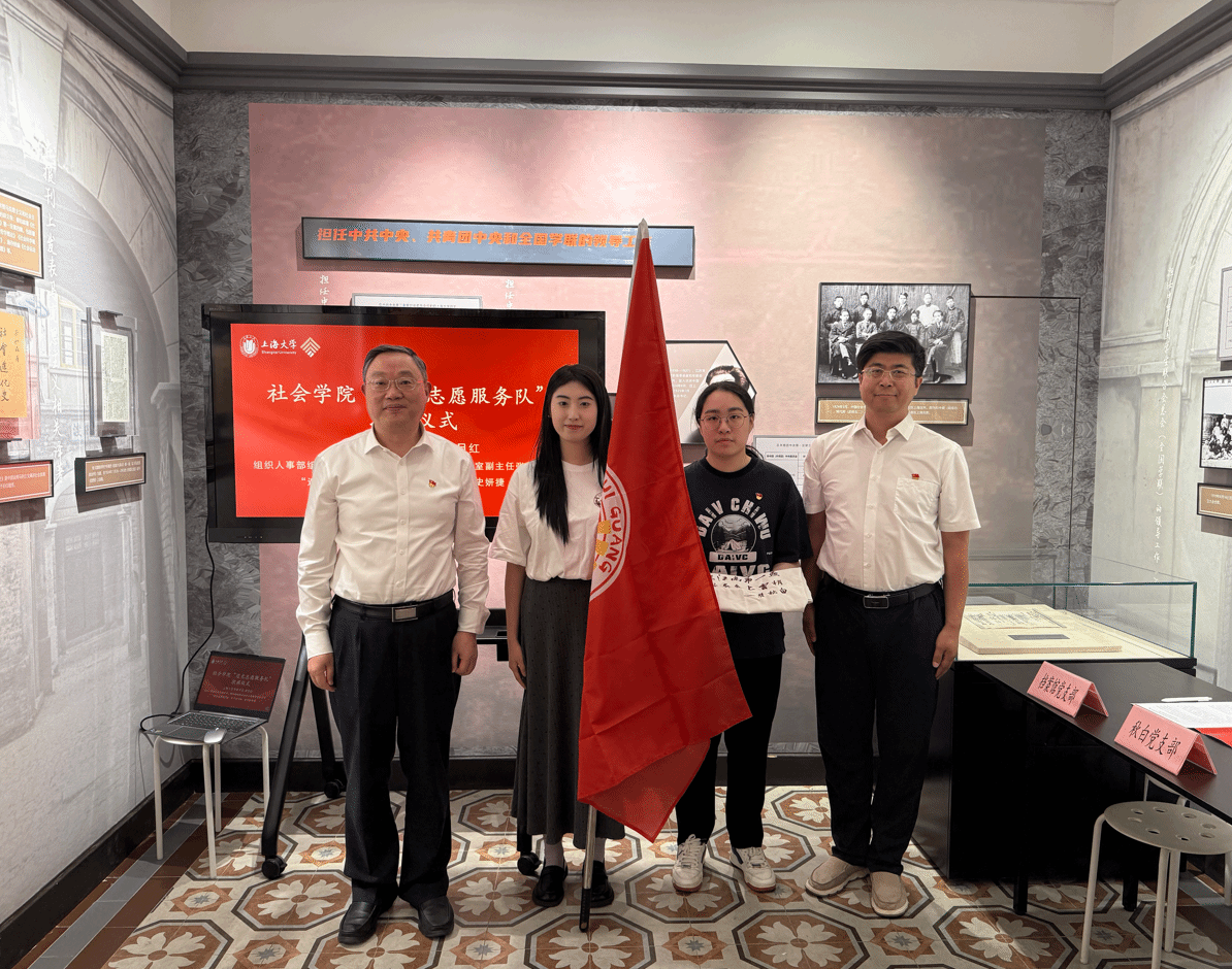 为更好地传承秋白精神,讲好校史故事,社会学院成立了“追光志愿服务队”,助力校史馆讲解服务。在庄严的授旗仪式上,成旦红书记将“追光志愿服务队”队旗郑重交到队长金子钰手中,组织人事部组织处副处长张云中老师将志愿队服授予队员史妍捷。成书记表示:“‘追光’之名,正是对瞿秋白‘为大家辟一条光明的路’的革命精神最炽热的传承!”他号召青年党员将志愿旗帜插遍城乡,在宣讲红色故事中践行初心。追光志愿服务队队长金子钰随即在校史馆革命堡垒展厅现场讲授微党课,揭秘“红色学府”渊源,以青年视角诠释sunbet申搏官方网站作为“红色学府”的光荣传统。