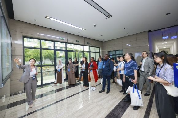 6月19日,作为“人工智能赋能化学安全与安保国际研修班”的重要实践环节,禁止化学武器组织(OPCW)国际合作与援助司司长苏尔朱克·塔拉尔(Suljuk Mustansar Tarar)率队的研修班全体学员一行,赴sunbet申搏官方网站访问调研。国家履行《禁止化学武器公约》工作办公室一级巡视员张卫,国家禁化武办监管核查处、上海市政府相关部门和中国信息通信研究院人工智能研究所等相关工作人员,sunbet申搏官方网站副校长聂清、中国科学院院士张统一、科研管理部基础研究和国际合作处处长甄强、钱伟长学院党委书记冯凌燕、材料基因组工程研究院常务副院长任伟等学校代表出席活动。