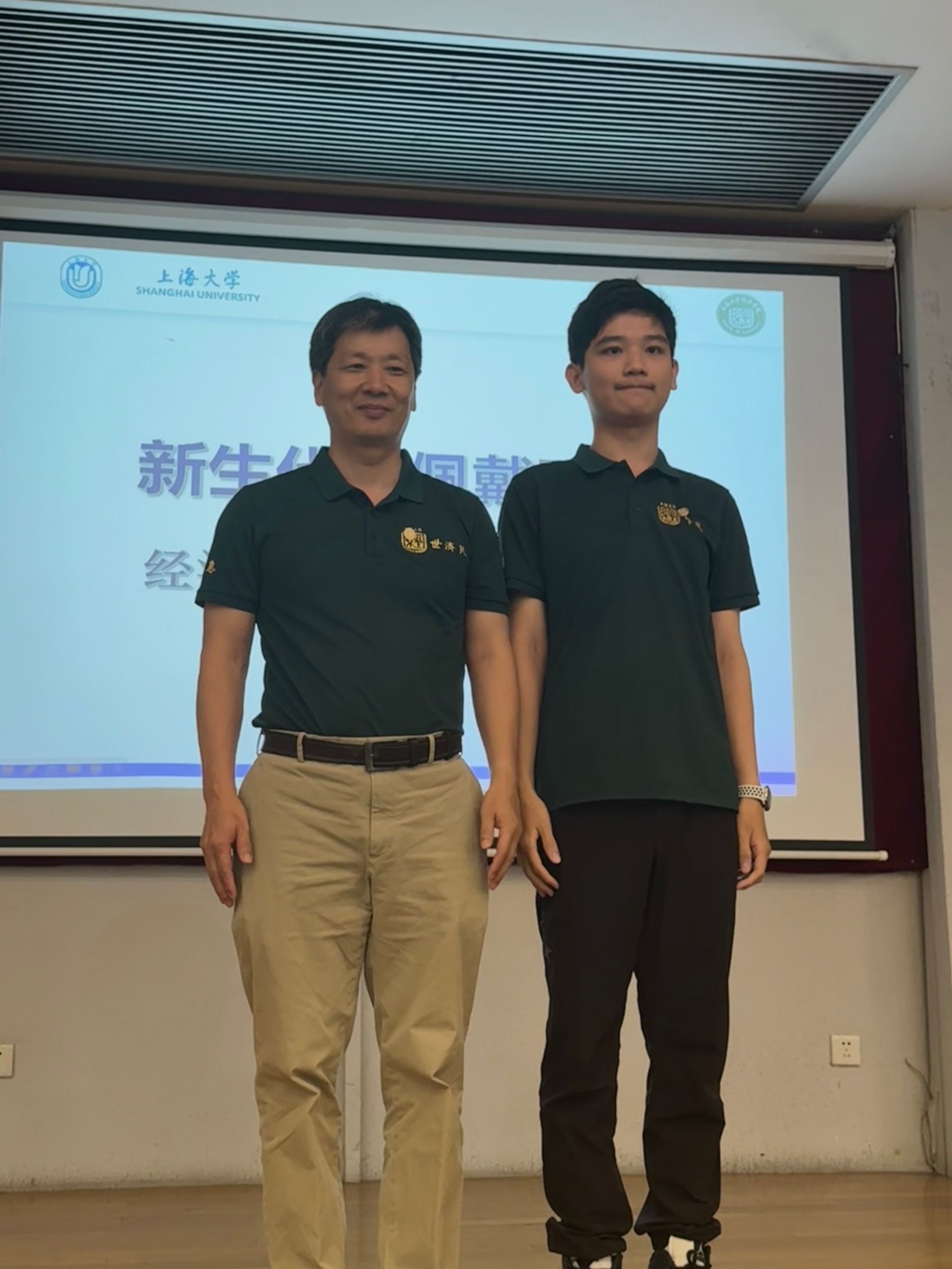 学生代表余凌浩发言,以“Passion”为主题,分享了自己大一期间在学业和生活的经历,随后他讲述了学院提供的企业参访、讲座等及辅导员的关怀,结合生活场景阐述经济学对认知社会的作用,最后强调Passion是支撑前行的动力,体现为热爱与坚持,呼吁同学们在大学时光中以热情互相帮助、共同成长。
