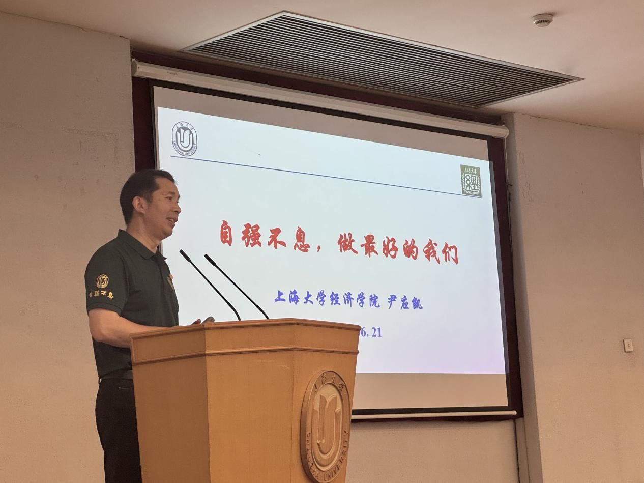 首先,尹应凯以“自强不息,做最好的我们”为题致辞。他详细地介绍了自强不息的sunbet申搏官方网站,回顾了学校在历史长河中的成长与辉煌。接着,他鼓励同学们在学院中传承自强不息的精神,不断突破自我、勇攀高峰,努力成为最好的自己。