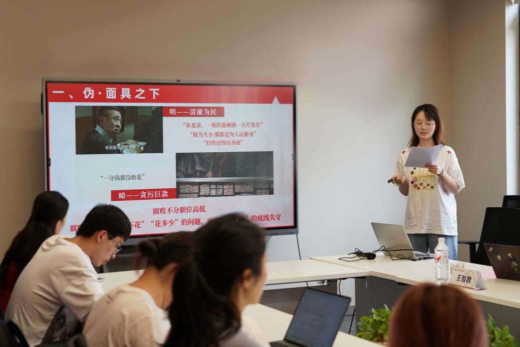 会议伊始,何鑫同学围绕《青年说清廉——Z时代党员的“清”春启示录》主题讲授微党课。课程从党的作风建设切入,结合“小微权力”腐败的典型案例,系统回顾了中国共产党百余年来在纪律建设和作风建设上的重要举措,警示党员干部“小权力”失守可能引发的巨大危害,强调青年党员必须扣好廉洁从政“第一粒扣子”,筑牢清正廉洁的思想防线。
