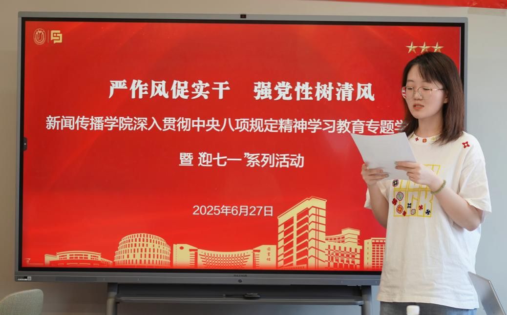 会上,王智君副书记强调,新闻传播学科具有鲜明政治属性,师生党员要深入学习贯彻中央八项规定精神,将作风建设融入学习生活全过程。她还指出,作为青年党员骨干,要立足专业优势,坚持正确政治方向,服务国家发展大局。