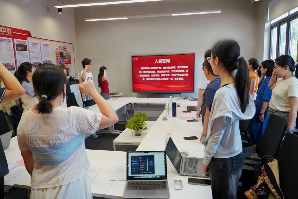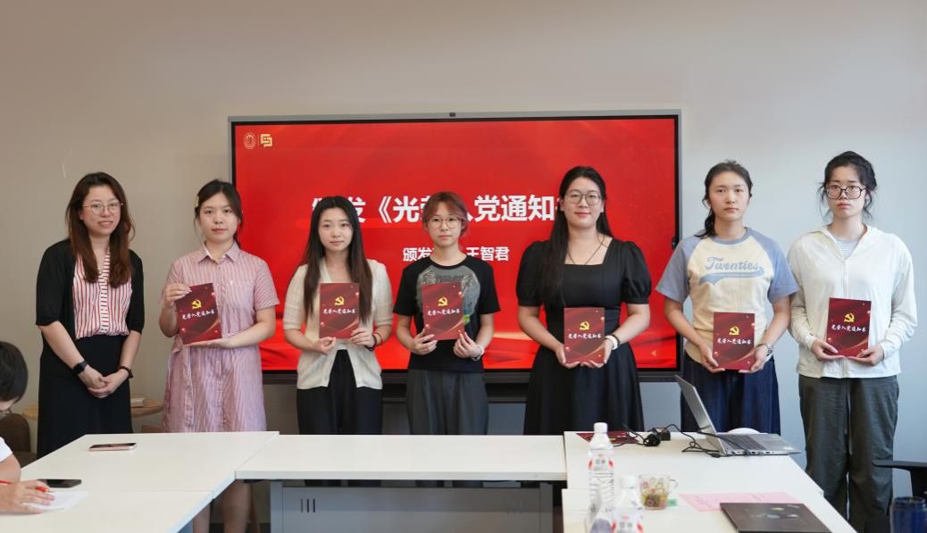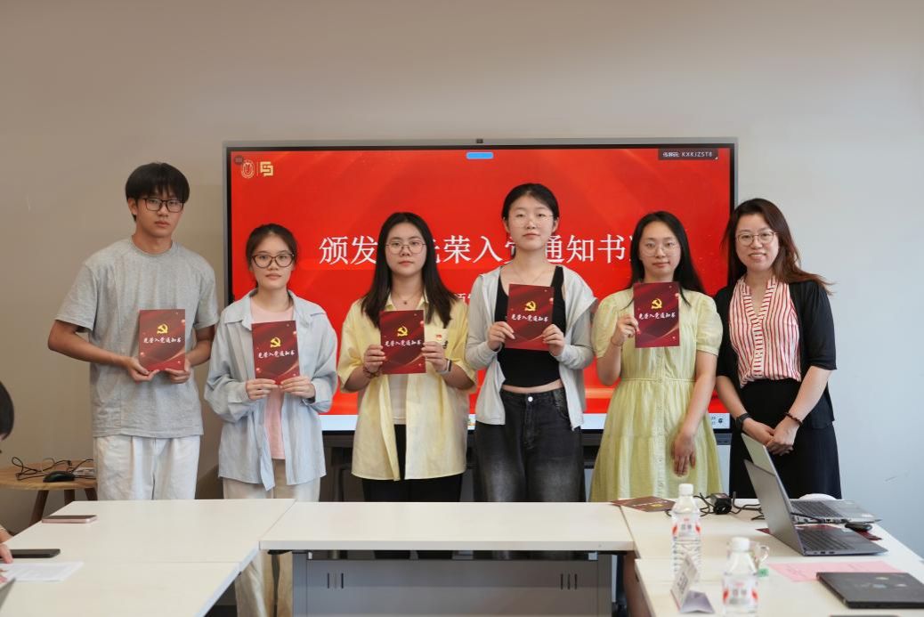 重温入党誓词环节,由盛文悦同志领誓,全体党员面向党旗庄严宣誓。铿锵誓言唤醒了入党初心,进一步强化了政治责任感和历史使命感。随后,党委副书记、副院长王智君为新发展党员代表颁发了《光荣入党通知书》,并勉励他们坚定理想信念,严守党规党纪,积极发挥先锋模范作用,为学院建设和社会发展贡献青春力量。