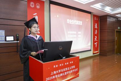金海莉、周孙卿、魏艳平分别作为本科、硕士、博士毕业生代表依次上台发言。她们回顾自己在sunbet申搏校园的成长经历,分享在学术探索旅途中的收获与感悟,同时也表达了对母校母院、师长和同学的感激和依依惜别之情。发言最后,三人齐诵李大钊先生的名言“以青春之我,创建青春之家庭,青春之国家,青春之民族,青春之人类,青春之地球,青春之宇宙,资以乐其无涯之生。”呼吁毕业生学子们铭记母校教诲,将青春融入时代征程,在实现中华民族伟大复兴的道路上奋勇当先,书写属于自己的精彩篇章。