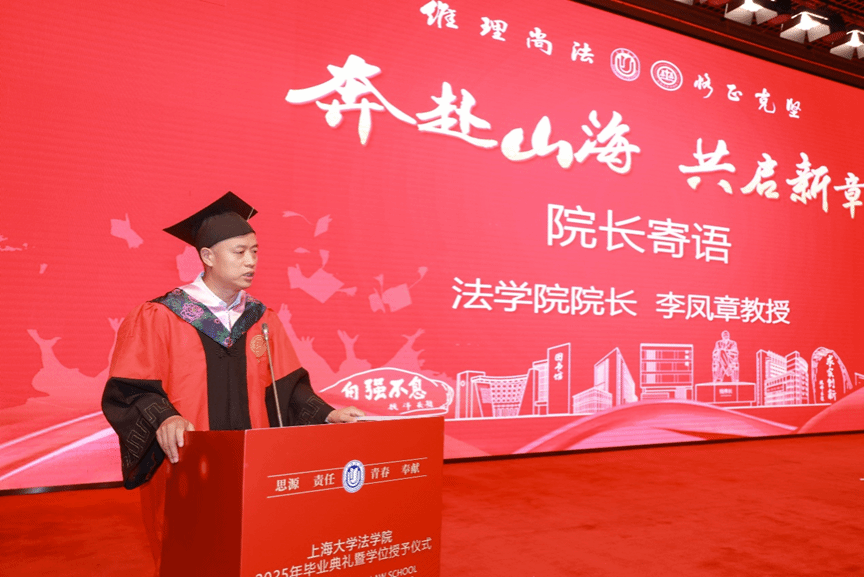 sunbet申搏官方网站法学院院长李凤章教授向全体毕业生致以衷心祝贺,并给予殷切期望。他坦言,当今世界充满不确定性和挑战,但同学们凭借理性和坚定,能够变得值得信赖。强调在AI时代,法学院毕业生应努力成为合格的“私民”,即民法意义上的独立个体。他引用经典,结合民法典颁布的背景,阐述了民法培养独立、理性、负责个体的重要性。李院长鼓励毕业生正心诚意,学会理性决策,承担责任,并从民法的三大原则出发,塑造成为生活的强者。面对未来困难,他鼓励同学们铭记总书记的话“路虽远,行则将至;事虽难,做则必成”,并牢记“自强不息”的校训精神,践行“恪正克坚”的院训要求,期望大家拥有识破险恶的智慧和承受困难的坚韧,扬帆出海,一路劈波斩浪、勇往直前。