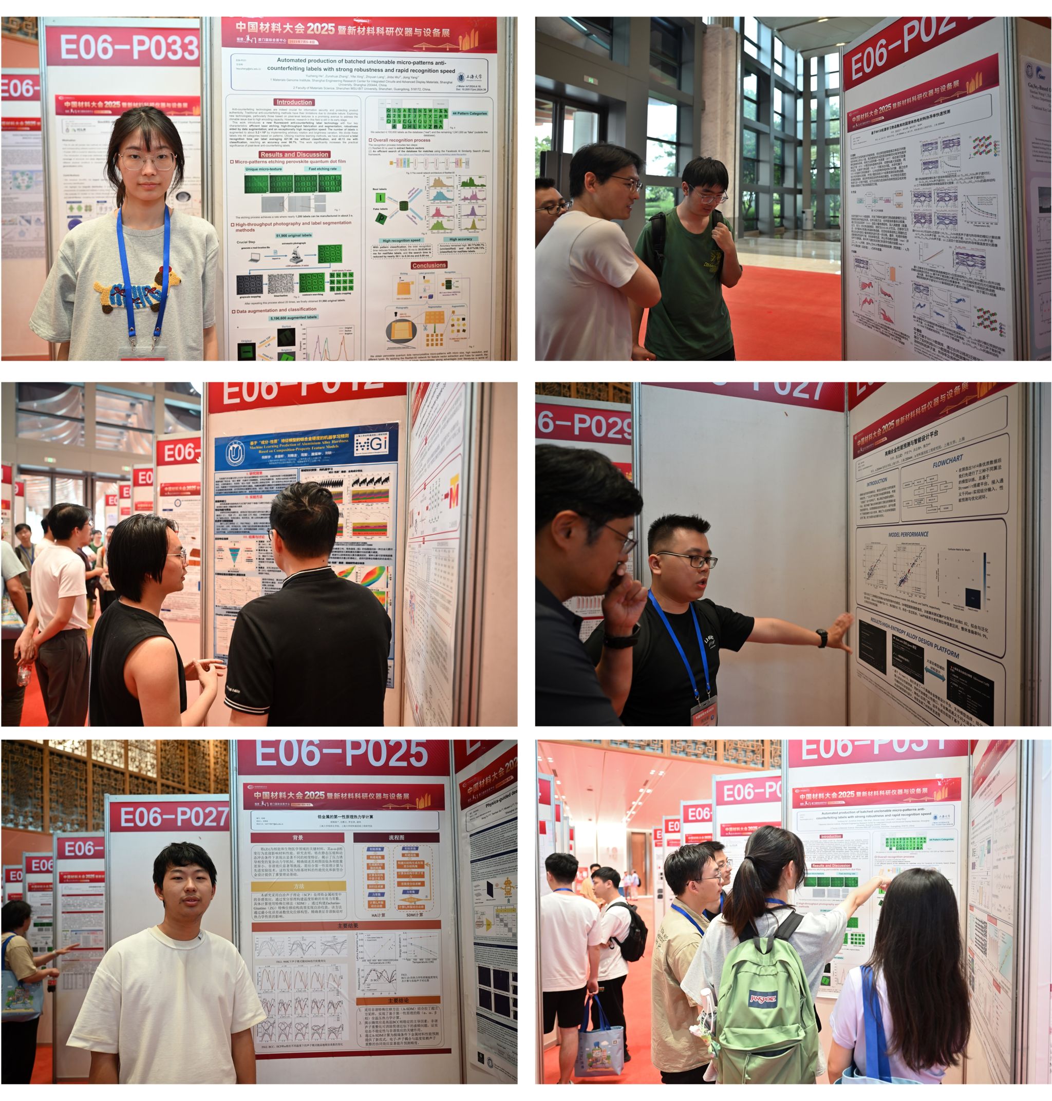 在为期三天的会议中,来自钱伟长学院的在读本科生与往届直升研究生等33名同学全程深度参与,展现出良好的学术素养。其中,2019级贺雨峥、2020级羊英涛、2020级倪新宇、2021级杨泉、2022级周天毅、2022级胡锦昶以及2022级郭绍军,共7名同学以墙报形式展示了各自的最新研究成果;另外,2020级杨钰嫣、2018级陆佳宜和2018级刘行健同学分别通过快闪报告和口头报告的形式,清晰流畅地分享了他们的最新研究发现。这些高质量的学术成果不仅体现了sunbet申搏学子在材料基因工程与人工智能交叉领域的创新思维和研究实力,更展示了sunbet申搏官方网站在跨学科创新人才培养方面的显著成效和独特优势。