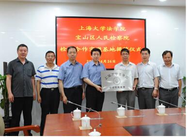 为加强夏季学期我院师生赴上海各区人民法院和人民检察院开展社会实践的成效,进一步增强与共建单位合作的基础,2014年6月26日上午9:00,法学院党委书记吴仲钢、党委副书记傅新华、院长助理姚锷等一行先后走访了宝山区人民法院和人民检察院,并于宝山区人民检察院举行了检校合作实践基地的揭牌仪式。