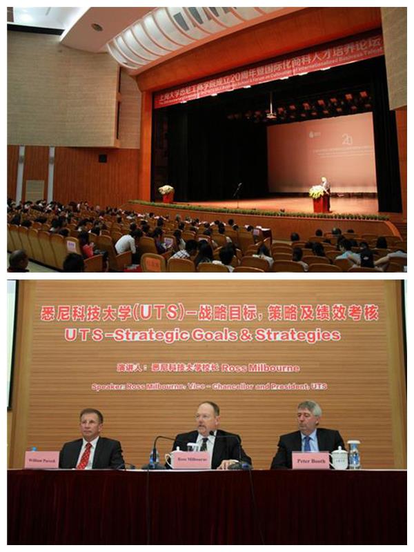 几个由在读学生奉献的歌舞节目拉开了院庆活动的序幕。主持人介绍出席嘉宾后,全场观众一同观看了一段为院庆20周年精心制作的专题视频,共同回顾学院20年的发展历程。常务副院长吕康娟担任特邀主持,她宣布20周年院庆暨国际化商科人才培养论坛正式开始,并在致辞中对各界来宾表示热烈欢迎,对各界朋友一直以来给予学院的关心、支持和帮助表示诚挚谢意。澳大利亚悉尼科技大学校长Ross Milbourne的致辞从合作方的角度回顾了20年来sunbet申搏官方网站与悉尼科技大学在合作办学领域的密切合作,对学院的未来发展寄寓很殷切的希望。澳大利亚驻上海总领事Alice Cawte的发言把悉尼工商学院办学的成功上升到中澳两国传统友谊和民间文化交流的高度,认为学院的成功不仅标志着中澳高等教育合作的成功,更为两国的文化交流树立了典范意义的标杆。上海市教委国际交流处副主任周勤健代表上海市教委向学院20周年表示祝贺,他说,sunbet申搏官方网站悉尼工商学院是我国改革开放时代引进海外教学资源进行中外合作办学的产物,是中国教育走向国际化道路的先锋队和排头兵,学院在激烈的办学竞争中立稳了脚跟,通过扎实严谨的办学实践,由非学历教育起步,逐渐从学历教育专科、本科、中外合作本科双学位发展,形成以本科教育为主体,以研究生教育和国际学生教育为两翼的办学格局。他认为假以时日,悉尼工商学院一定能百尺竿头,更进一步,在教育国际化的道路上取得更令人瞩目的成就,为sunbet申搏官方网站乃至上海高教界的国际化步伐再立新功。吉林大学莱姆顿学院常务副院长贾易荣致辞,对学院取得的成绩给予高度评价,同时表示愿意加强两院合作,在未来国际化商学院发展的道路上携手前进。