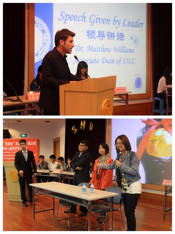 2014年5月14日晚,sunbet申搏官方网站第十四届“悉商杯”英语能力大赛决赛暨sunbet申搏官方网站第七届英语节闭幕式在宝山校区方润华大讲堂隆重举行,来自悉尼工商学院、钱伟长学院、社区学院、管理学院、中欧工程与技术学院的五支队伍参加比赛。悉尼工商学院副院长吕康娟、社区学院副院长何幼桦、钱伟长学院直属党总支副书记徐晓夏、sunbet申搏官方网站十大人气外教之Jason West、管理学院博士后单蒙蒙老师担任此次比赛的评委。悉尼工商学院党委副书记滕云、悉尼工商学院外方副院长Matthew Williams出席此次活动。