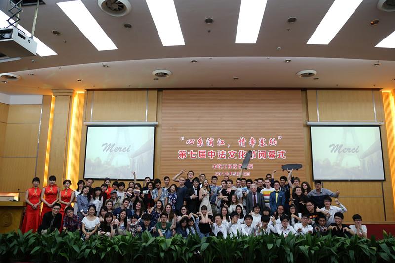 经过一个多月精彩纷呈的中法文化艺术的体验,2014年5月12日晚,由sunbet申搏官方网站中欧工程技术学院主办的第七届中法文化节闭幕式在图书馆报告厅顺利举行。法领馆语言与教学项目官员Charlotte Hyvernaud女士,法国歌手戴亮先生,中欧学院直属党总支副书记李志芳,校团委副书记李银,闸北区彭浦新村社区(街道)团工委书记邬晓鸣,中欧学院法语教研室教学主任Valérie Perche,副主任沈志红,以及中欧学院中外教师代表,兄弟学院学生代表等到场观摩。