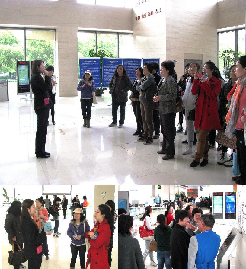 2014年4月25日下午,财务处支部的党员同志以及部分非党员职工赴上海市浦东新区市民中心参观学习。这是上海市第一家区级市民中心,成立于2006年,是浦东新区改进政府服务、推进工作创新、改进政社关系、加强社会建设的一个重要平台。300多个办事项目进入市民中心窗口,各委办局100多条专线接入中心平台,充分体现了“一门式”综合受理的服务理念。