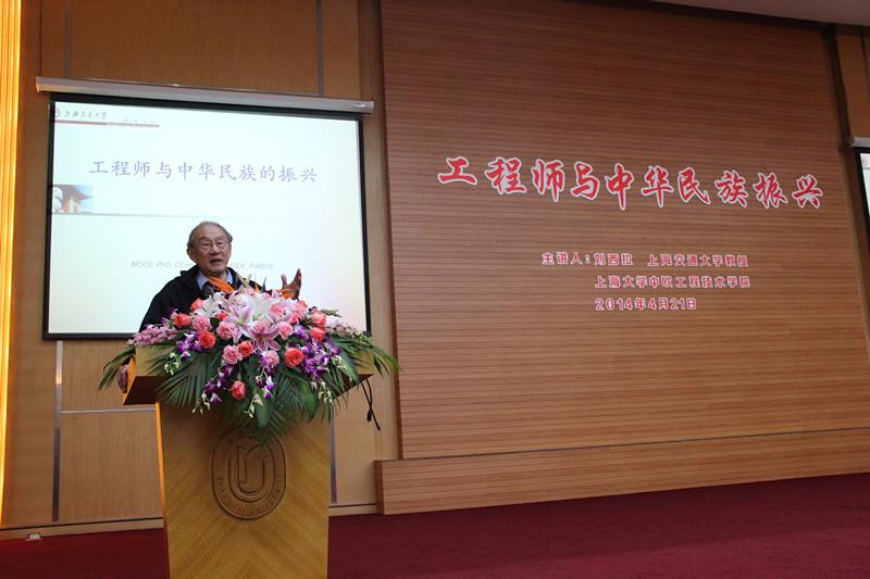 4月21日,应中欧工程技术学院邀请,上海交通大学知名教授刘西拉来sunbet申搏作“工程师与中华民族的振兴”主题讲座。本次讲座是中欧工程技术学院“工程师能力素养和行为训练”课程内容之一,希望同学们了解工程师肩负的责任和使命,同时学会如何听讲座和如何提问。中欧学院直属党总支书记、院长钱晋武,中欧分管教学副院长陆歆弘,土木工程系直属党总支副书记秦凯丰及教师代表等出席,来自中欧、土木、理学院、钱伟长学院等多个院系的四百多名学生到场聆听讲座。中欧学院直属党总支副书记李志芳担任主持。