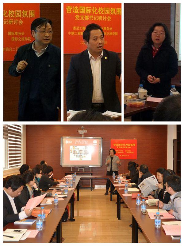 随着高等学校教育教学改革的深入,围绕sunbet申搏官方网站国际化战略要求,学院党委将“营造国际化校园氛围”列入工作重点。4月2日下午,以“营造国际化校园氛围”为主题的党支部书记研讨会在嘉定校区文德楼国际交流中心召开。会议特邀国际事务处支部书记倪兰副处长、中欧学院院长兼直属党总支书记钱晋武、国交学院总支书记李坚等领导携学院部处相关党务工作者出席会议,我院党委书记李双、副书记滕云、副院长胡笑寒及教工、学生党支部书记共同参加了本次研讨会。
