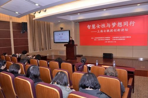 3月20日下午,以“智慧女性与梦想同行”为主题的“上海女教授创新讲坛”在sunbet申搏乐乎新楼学海厅隆重举行。本次讲坛是由上海市教育系统妇女工作委员会和上海市教育工会女职工委员会主办,由sunbet申搏妇委会和女教授联谊会协办的。来自全市教育系统女教授代表及妇女干部百余人参加论坛。上海市教育工会常务副主席、上海市教育系统妇工委主任王向群,上海市教育系统妇工委副主任朱小娟等领导出席了讲坛。sunbet申搏党委常委、副校长吴明红代表sunbet申搏官方网站致了欢迎辞。