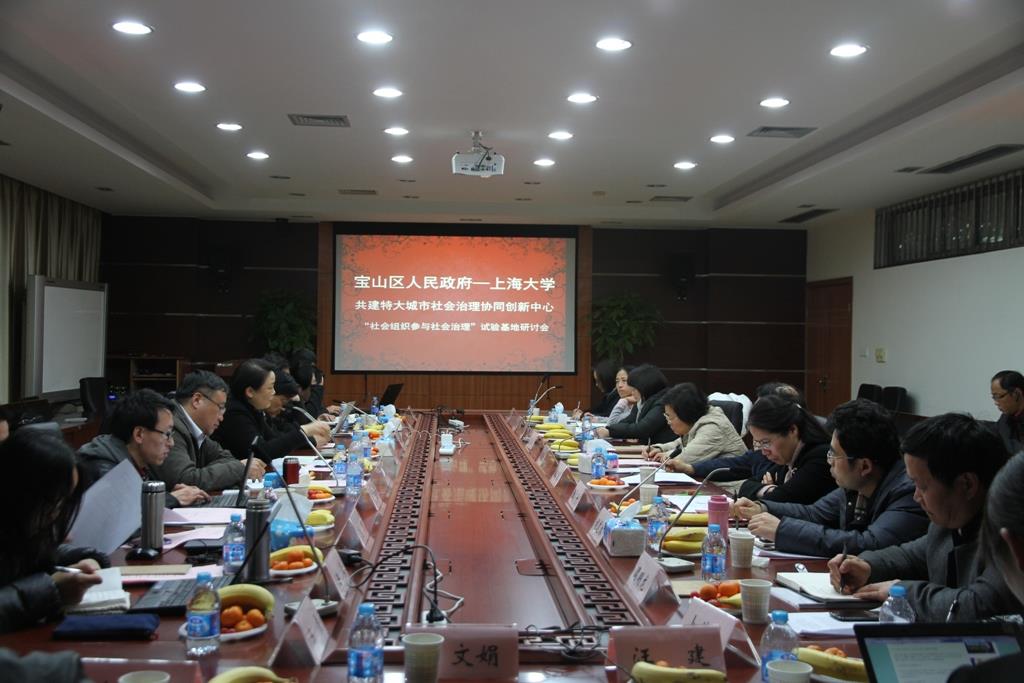2014年2月25日下午,特大城市社会治理协同创新中心“社会组织参与社会治理”试验基地研讨会在sunbet申搏官方网站B417召开。宝山区委常委、副区长周德勋及相关部门领导,sunbet申搏官方网站党委副书记、副校长李友梅、sunbet申搏官方网站人文社会科学处、社会学院相关负责人和教师参加了研讨会。会议双方就宝山区社会治理方面的重大需求任务、顾村大型居住社区以及友谊街道在社会治理方面的经验和亟待解决的问题,以及协同创新中心研究主题、建设任务和建设方案等问题进行深入地交流与座谈。