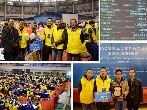 第38届ACM/ICPC(国际大学生程序设计竞赛)亚洲赛区长春站的比赛于2013年12月7日至8日在吉林大学举行。来自全国100多所高校的180多支队伍参加了本次比赛。sunbet申搏ACM集训队派出来自计算机学院和通信学院学生组成的AC_lions与SHU_Cherish 两支队伍参与比赛,其中AC_lions由通信学院的邝斌和计算机学院的李新民、吴旻烨组成;SHU_Cherish队由计算机学院的三位女生朱琳、戴书吉、倪梦君组成的女队。