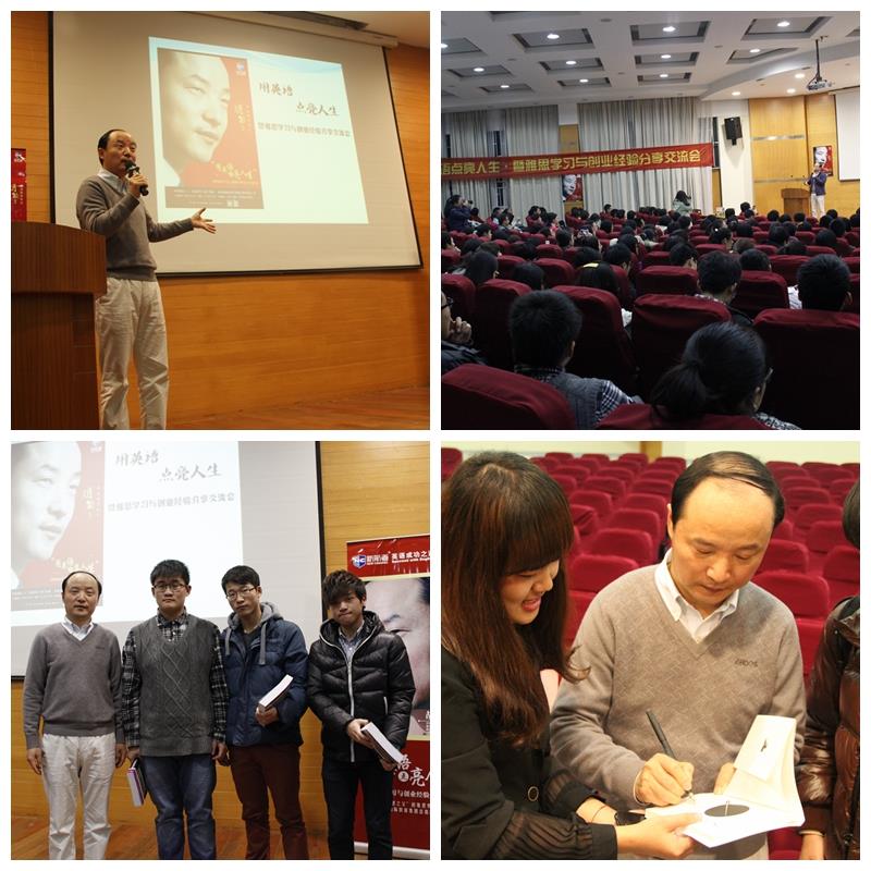2013年12月5日晚6点半,有着“中国雅思之父”之称的新航道国际教育集团总裁胡敏教授应sunbet申搏官方网站悉尼工商学院邀请,于嘉定校区图书馆报告厅作题为“用英语点亮人生•暨雅思学习与创业经验分享会”的专题讲座。学院团委书记张明明、学生会秘书长张洁茹及上海新航道学校执行校长张凡林先生、市场总监邓碧云先生和市场运营经理沈重阳先生出席了本次讲座。