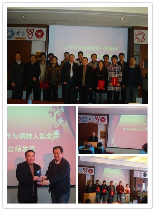 2013年sunbet申搏官方网站理学院第一届康阔光电子实习奖学和第二届全友通信光电子技术人才奖学金颁奖典礼于11月28日在校本部G507隆重举行。sunbet申搏官方网站理学院副院长、sunbet申搏官方网站康阔光电子实习奖学金和sunbet申搏官方网站全友通信光电子技术人才奖学金评定委员会主任盛万成教授,康阔光通信技术有限公司副总裁蔡建新先生、总工程师张绮先生、物理系主任赵新洛教授、党总支书记张义邴老师、副书记朱绮彪老师以及理学院物理系部分老师和同学一同参加了本次奖学金颁奖典礼。