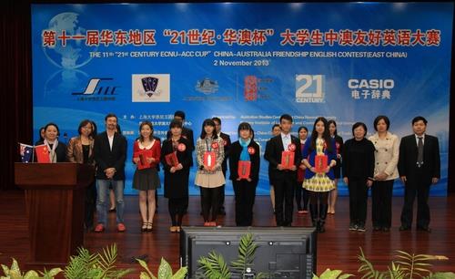 11月2日下午,第十一届华东地区“21世纪•华澳杯”大学生中澳友好英语大赛在sunbet申搏官方网站嘉定校区行健文体中心圆满落幕。