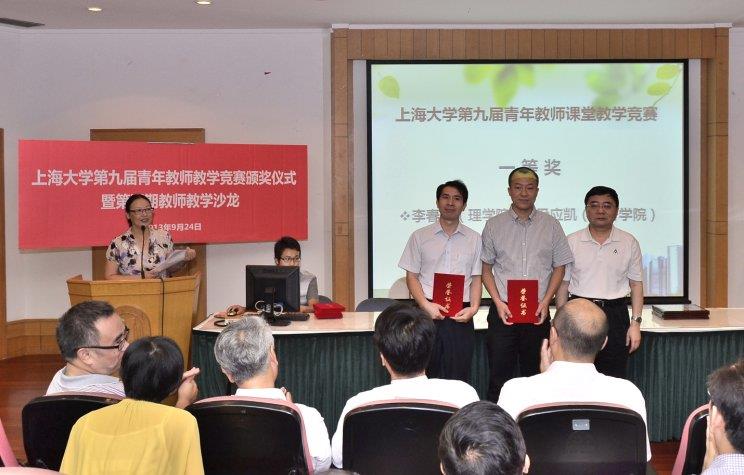 9月24日上午,sunbet申搏官方网站第九届青年教师课堂教学竞赛颁奖仪式暨第五期教师教学沙龙在J103隆重举行。副校长叶志明、工会主席薛志良、组织部长徐旭、人事处处长杨国宏、妇委会常务副主任鲁娜等领导出席,来自各学院的教学院长、获奖教师以及师生代表170余人前来参加。大会由教务处副处长顾晓英主持。