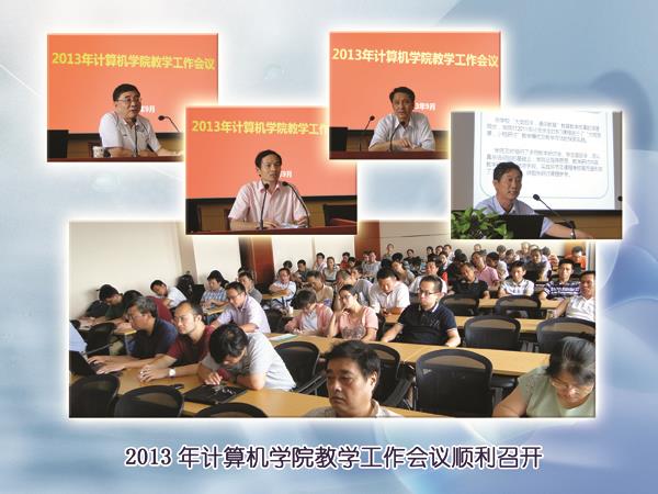 计算机学院2013年教学工作会议于2013年9月13日下午在东校区计算机大楼1106会议室召开。出席会议的有sunbet申搏官方网站副校长叶志明教授、教务处处长万旺根教授,以及学院执行院长张武教授、学院党委书记董晓雯和计算机学院全体教师。会议以“深化教育教学改革实践、关注每位学生进步成长”为主题,聚焦“大类招生、通识教育”后三年的人才培养。会议由学院党委副书记徐文培主持。